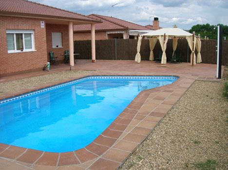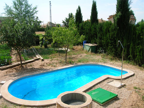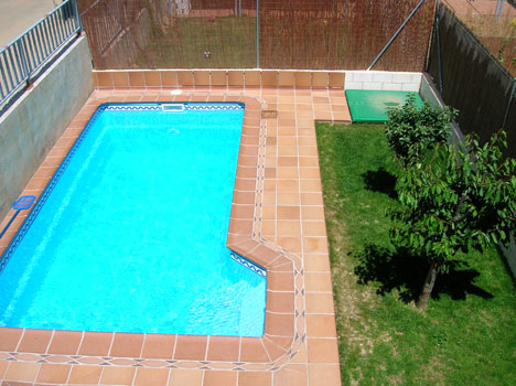 La piscina se instala ligeramente más elevada que el terreno para evitar que entre suciedad o césped.